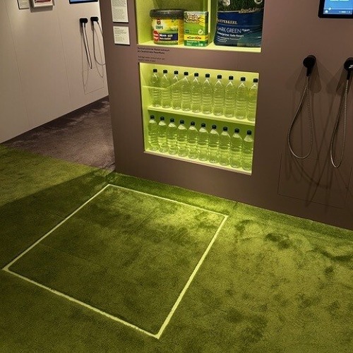 Auch Wasserverbrauch wurde thematisiert. Für einen Quadratmeter Rasen verbraucht man 20 Liter Wasser pro Woche. Die Ausstellung stellt anschaulich das Verhältniss von Wassermenge zu Fläche dar.