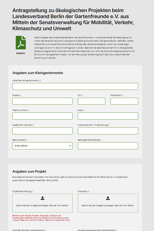 Link zum Antragsformular für ökologische Projekte auf privaten Kleingartenflächen